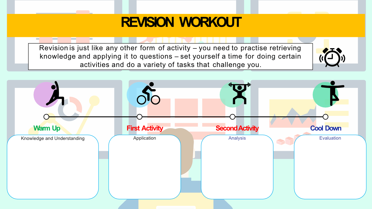 Each Revision Workout consists of 4, 15 minute, exercises based around the AOs of Knowledge and Understanding, Application, Analysis and Evaluation. To save me the trouble of explaining how this all works, just have a look at one of the example Workouts and you’ll see how this all fits together.