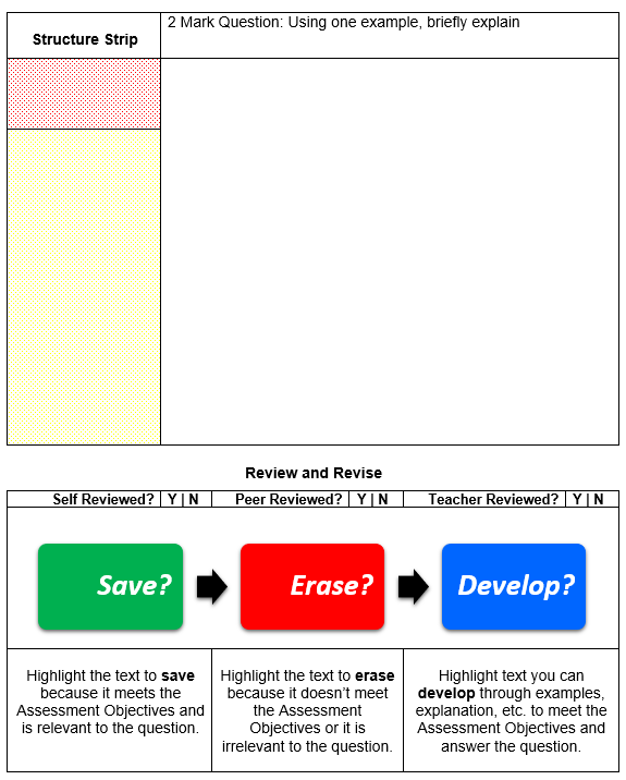 eviewing and revising student work at GCSE or A-level is a crucial part of the teaching and learning process and one way to encourage this is to use a simple formula: Save, Erase, Develop (SED). This post looks at how your students can review and revise their written work using this formula. It can also, if you use them, be easily integrated into Structure Strips.
